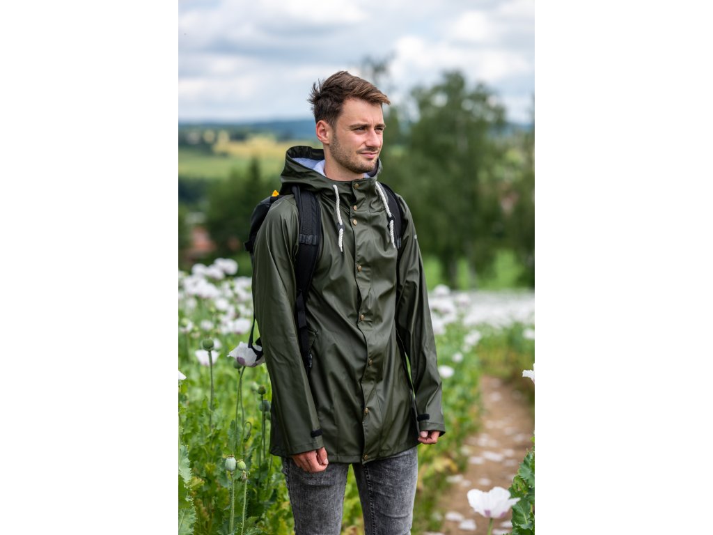 Klasická nepromokavá bunda se svařovanými švy z PU materiálu. Ideální pláštěnka, kterou lze nosit během několika ročních období.
