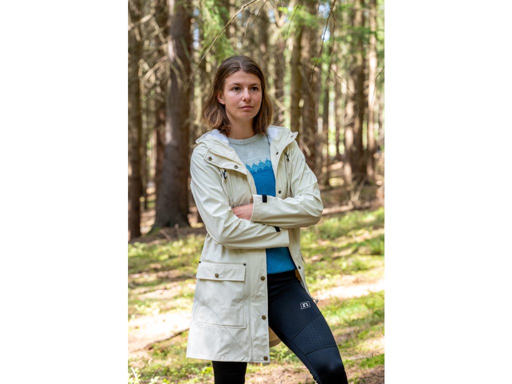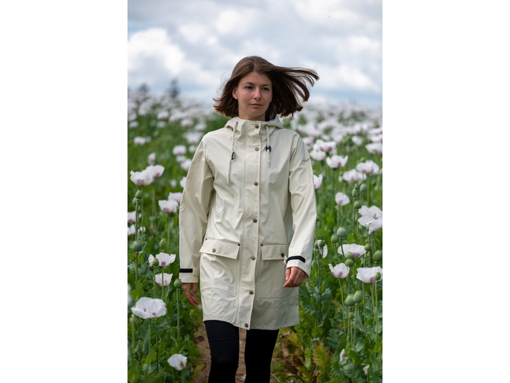 Nepromokavý kabát se svařovanými švy z PU materiálu. Slouží jako ideální pláštěnka, kterou lze nosit během několika ročních období. Zapíná se na zip i knoflíky. Kapuce je nastavitelná pomocí šňůrky a konce rukávů lze upravit suchým zipem. Dvě prostorné přední kapsy bez zipu. Reflexní potisk na zádech zajišťují lepší viditelnost.